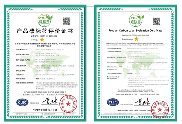 此次碳标签评价表明,开云在线平台电气生产的户外柱上真空断路产品,在碳排放大数据方面按国际通行惯例推进,并具备一定的优势,对促进产品全供应链的温室气体减排,达成“双碳”目标具有积极作用。此外,开云在线平台还获中国电子节能技术协会颁发的低碳产品供应商证书。